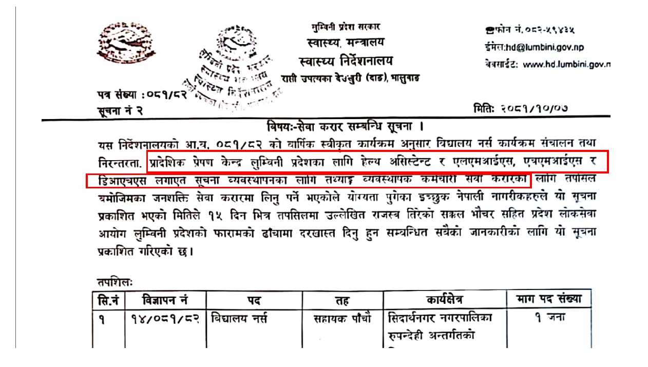 बागमती प्रदेश स्वास्थ्य मन्त्रालयमा हे.अ.आवश्यकता सम्बन्धी सूचना