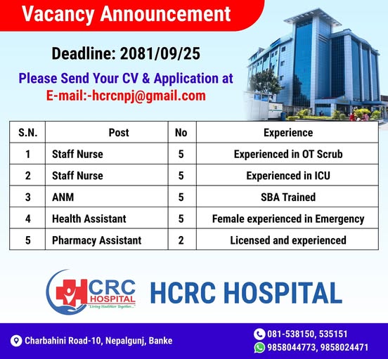 Vacancy Announcement at HCRC Hospital Nepalganj