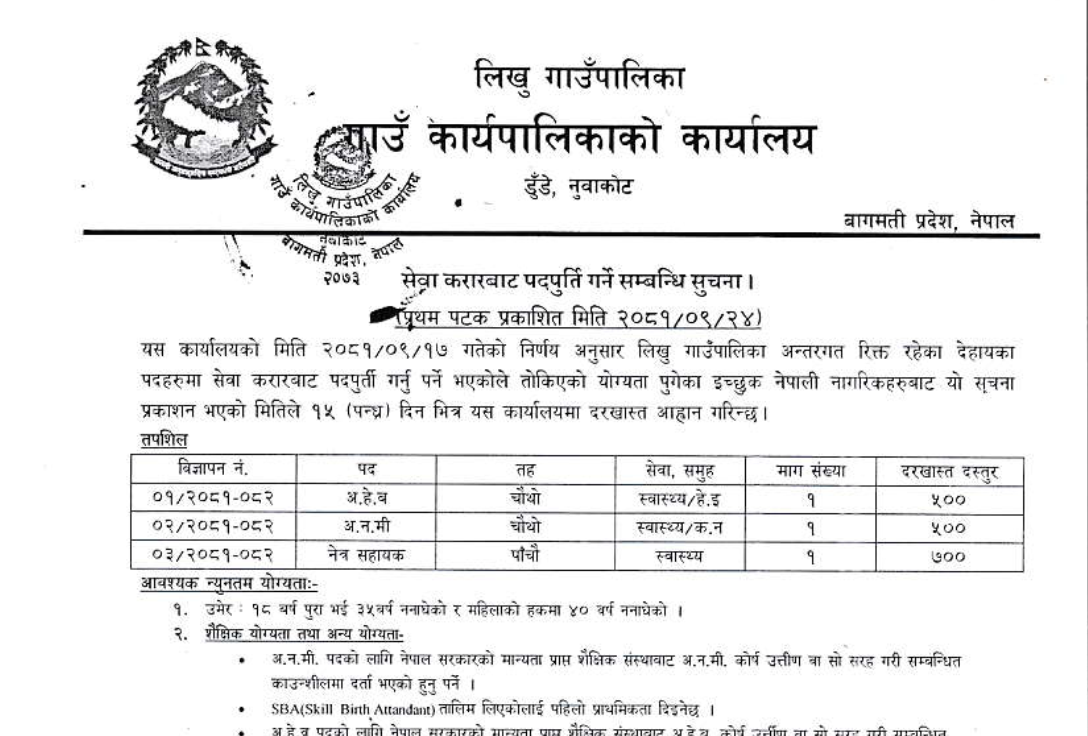 लिखु गाउँपालिका, नुवाकोटमा कर्मचारी आवश्यकता सम्बन्धी सूचना