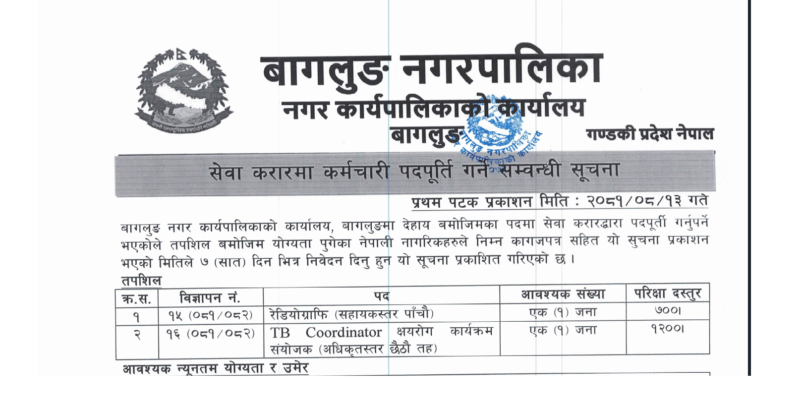 बागलुङ नगरपालिकामा कर्मचारी आवश्यकता सम्बन्धी सूचना