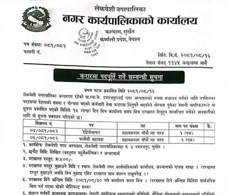 लेकबेशी नगरपालिका सुर्खेतमा कर्मचारी आवश्यकता सम्बन्धी सूचना