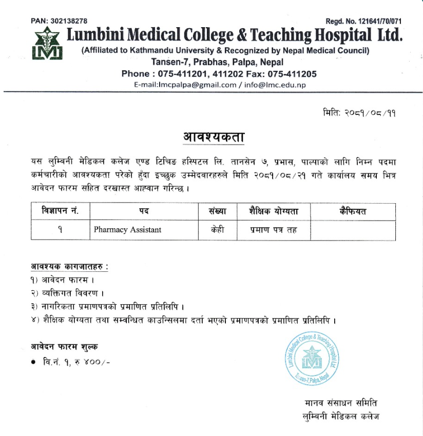 पोखरा स्वास्थ्य विज्ञान प्रतिष्ठानमा करार सेवामा कर्मचारी आवश्यकता सम्बन्धी सूचना