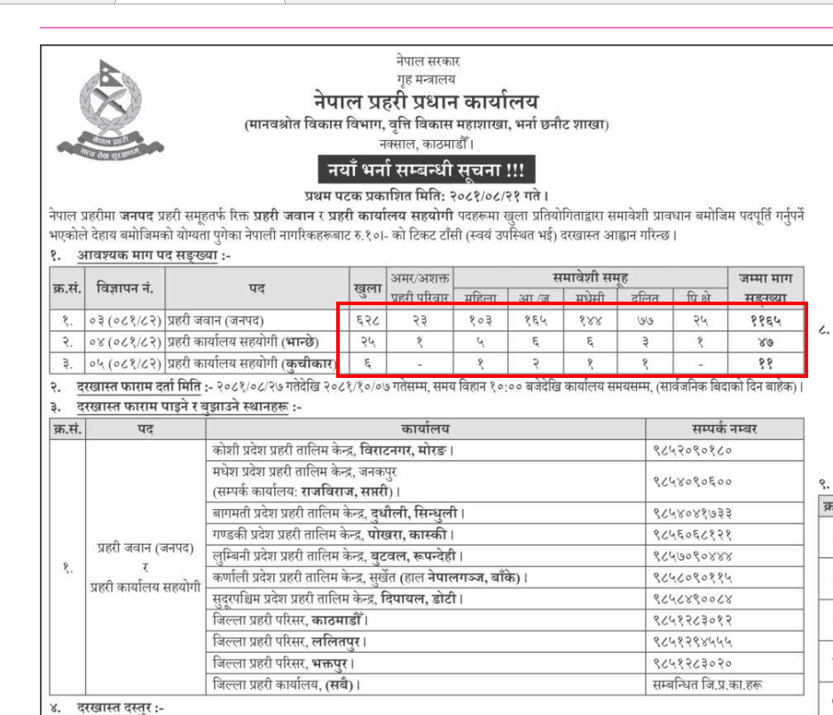 नेपाल प्रहरीमा प्रहरी जवान सहित (१२२३ संख्यामा) नयाँ भर्ना सम्बन्धी सूचना