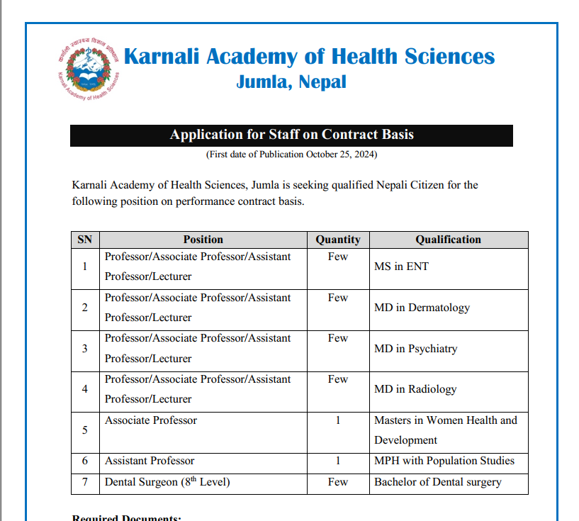 धौलागिरी अस्पतालमा चिकित्सक लगायत १८ जना स्वास्थ्यकर्मी आवश्यकता सम्बन्धी सूचना