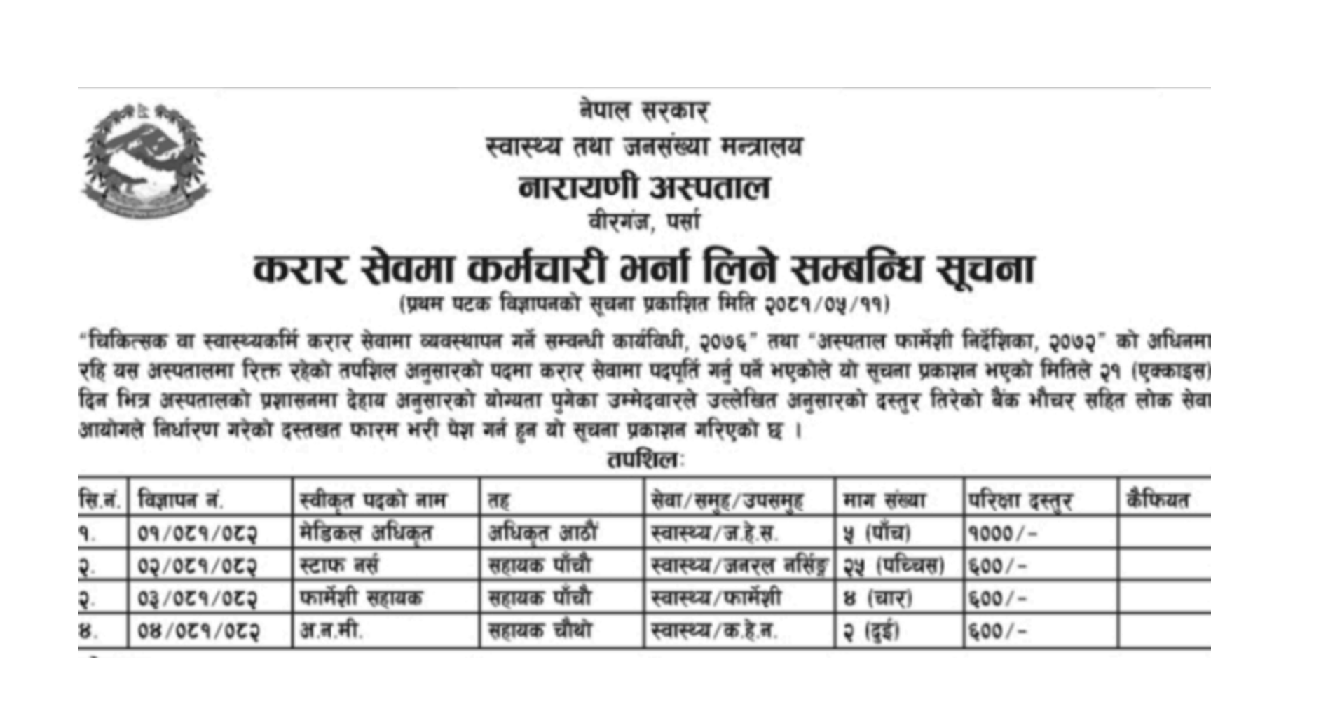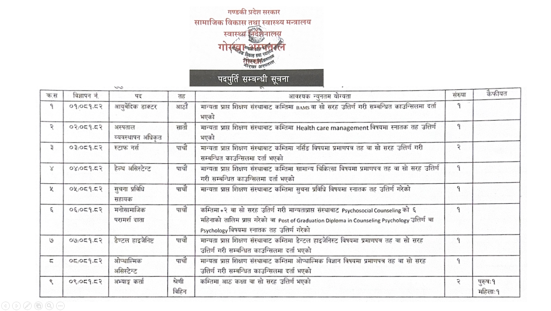 गोरखा अस्पतालमा कर्मचारी आवश्यकता सम्वन्धी सूचना !